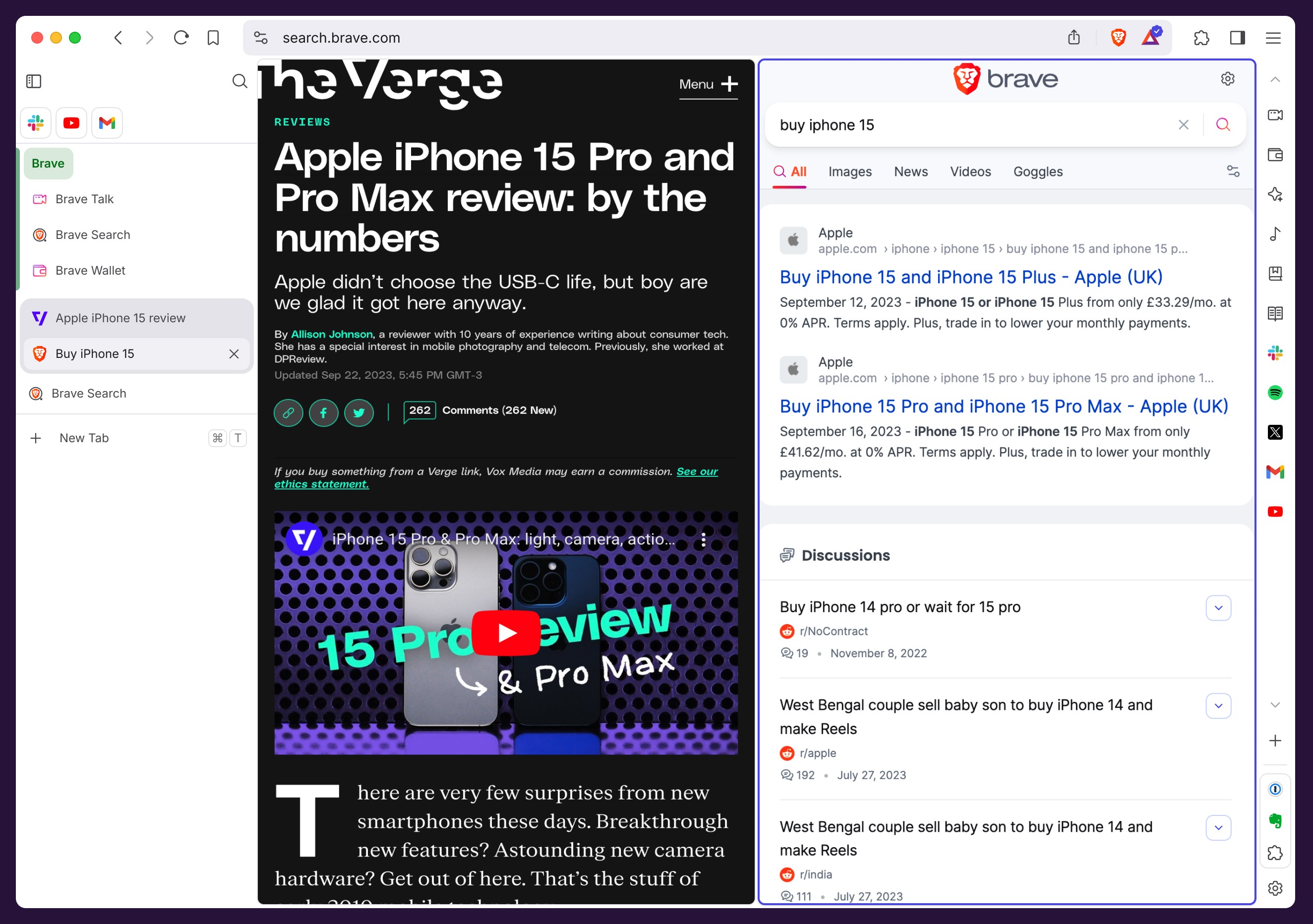 Beyond AI-driven organization, we're investigating ways to enhance the split view functionality to support more complex workflows. This could include customizable layouts that adapt to different types of content, such as a three-panel view for comparing products with an AI generated layout that doesn't depend on the websites you're visiting, but rather a completely new UI to just focus on the task at hand.