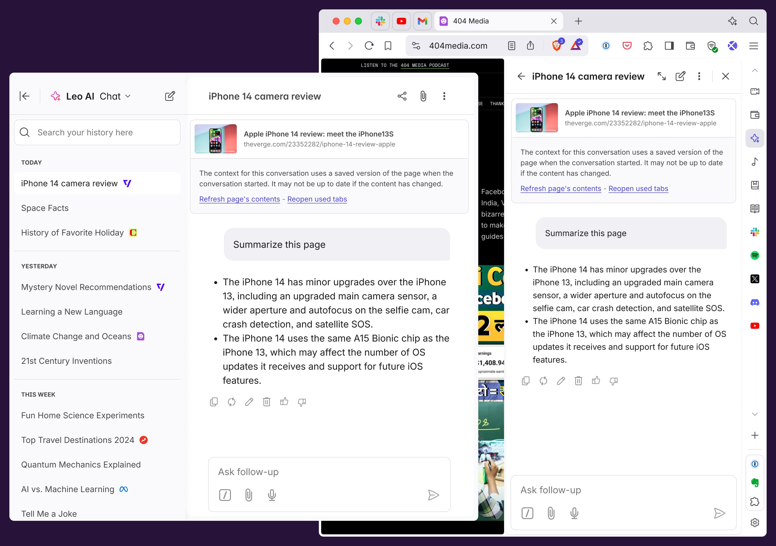When viewing it from history, the page context will be cached, so we offer the possibility of reloading the page's contents to get the most up-to-date version of the website. They can even re open the tab the context came from, for easy access.